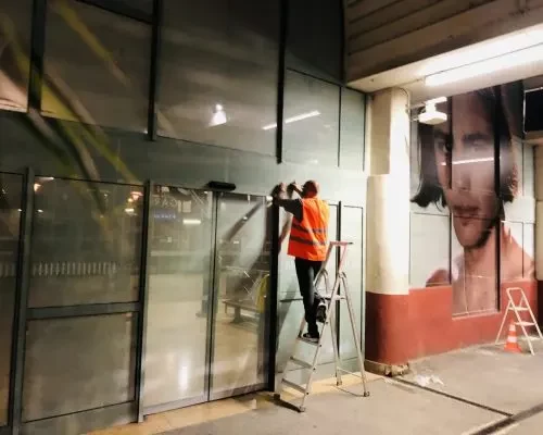 Une fois l’enseigne installée, l’équipe procède au nettoyage de la zone afin de laisser le site propre, sécurisé et conforme.